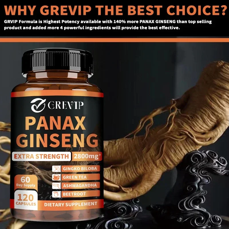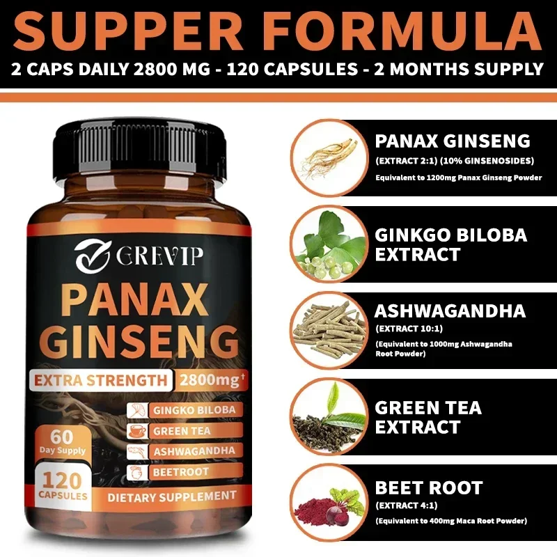 BENEFICIOS ADICIONALES: Las cápsulas de ginseng contienen hasta 2800 mg por porción; tome 2 cápsulas al día para aumentar la energía, la fuerza, el tamaño, el sistema inmunitario y mantenerse activo durante todo el día. 1 frasco contiene 120 cápsulas para 2 meses de uso.